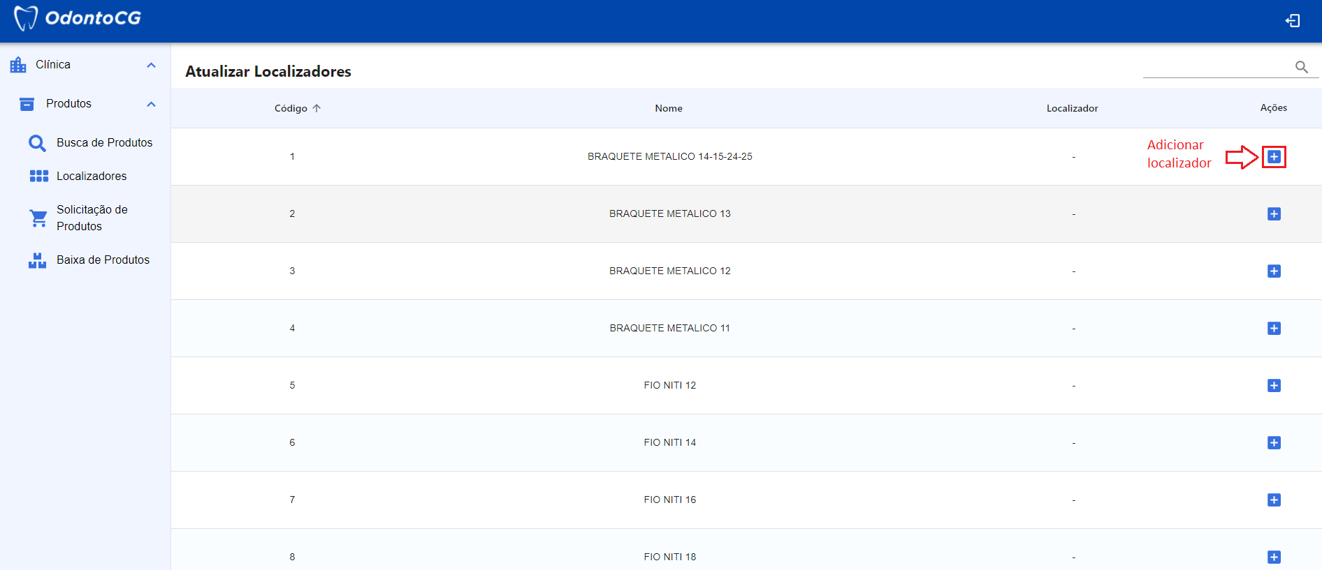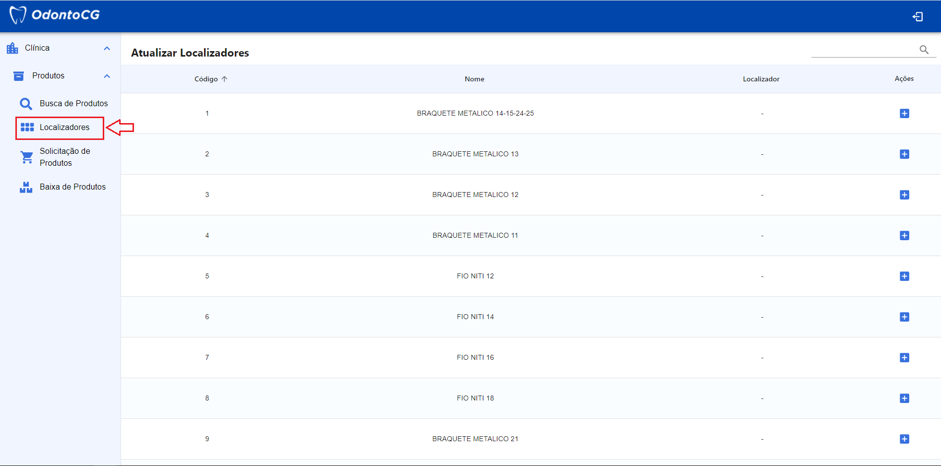 Para adicionar um Localizadores, no campo Ações, clique no botão "+" para adicionar um localizador, como exibido na Figura 4.