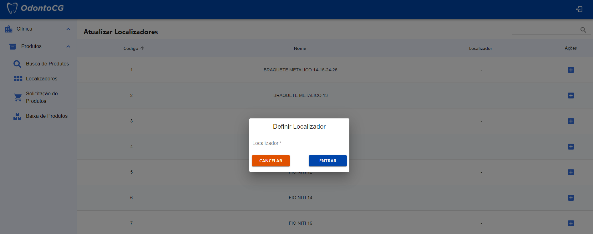 Clique em Entrar para efetuar o cadastro de um localizador. Caso contrário, clique em Cancelar para voltar a tela de Listagem de localizador.