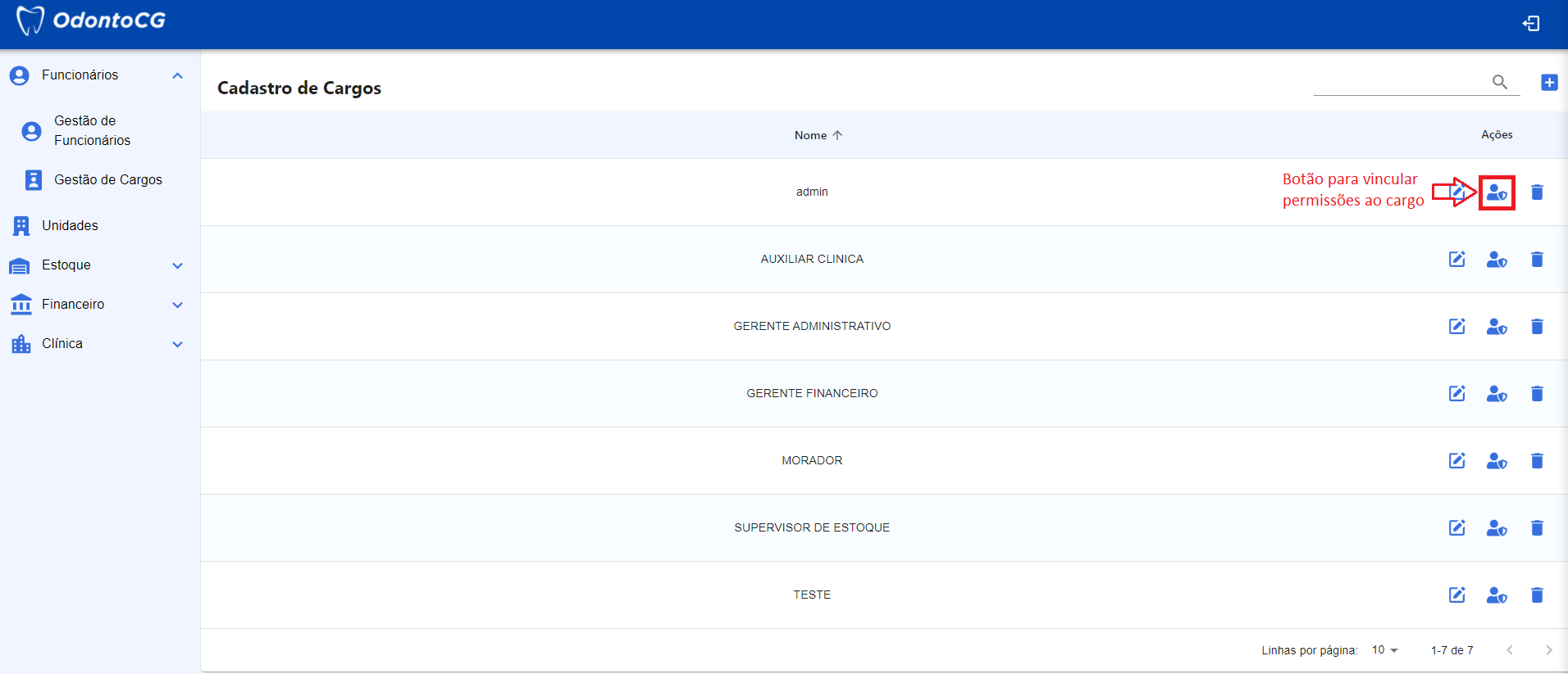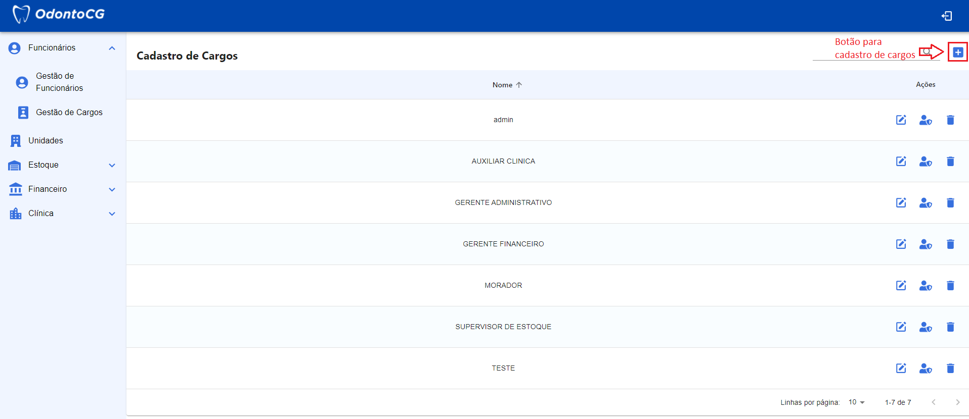 - Nesta tela é apresentada a Listagem de Cargo cadastrados no sistema, como exibido na Figura 1