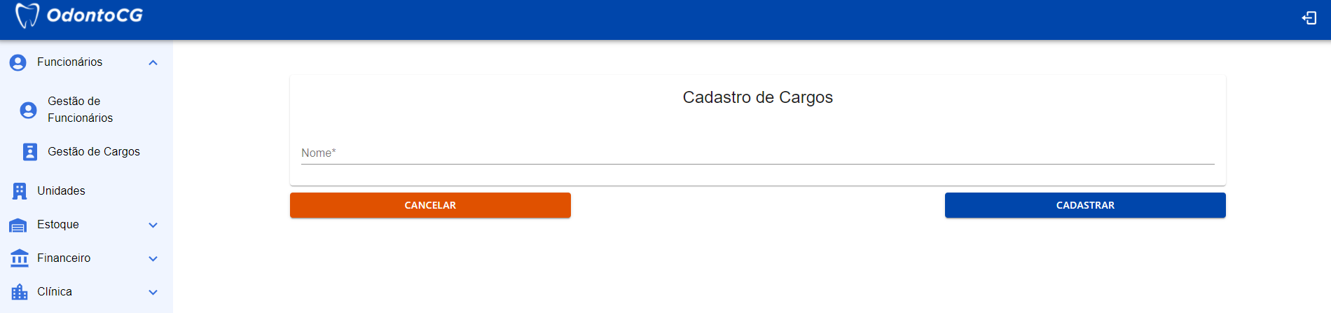 Em seguida o sistema irá direcionar para uma página na qual será necessário preencher o "Nome" do cargo na qual se deseja cadastrar, como apresentado na Figura 3.